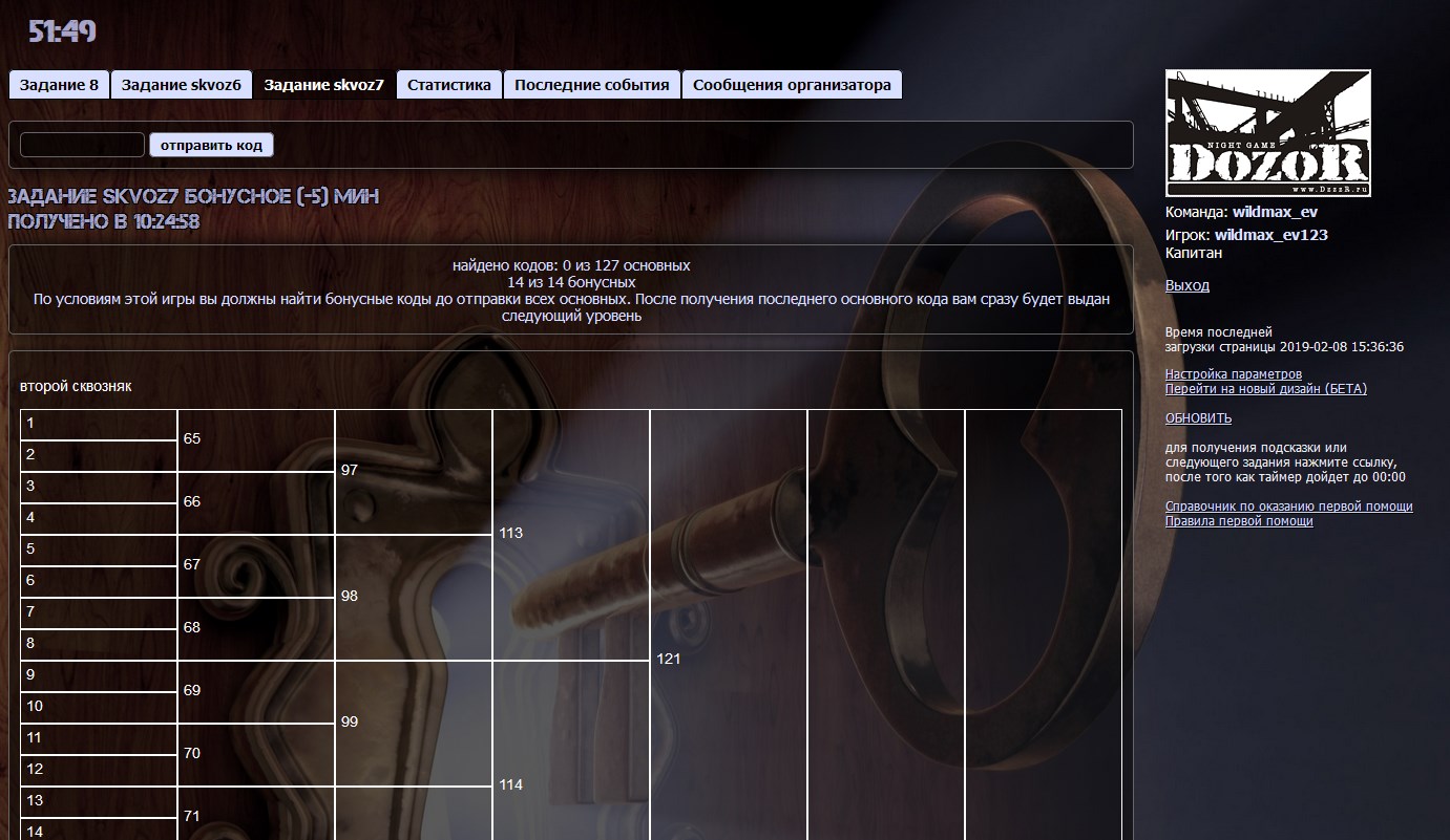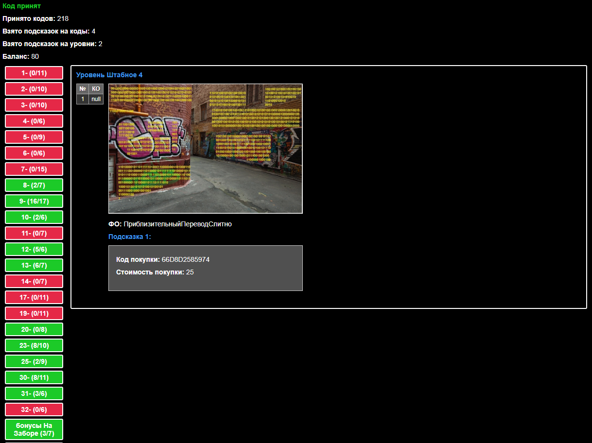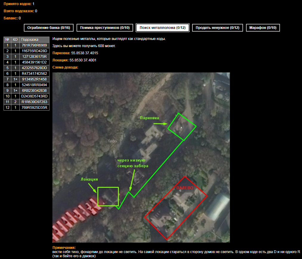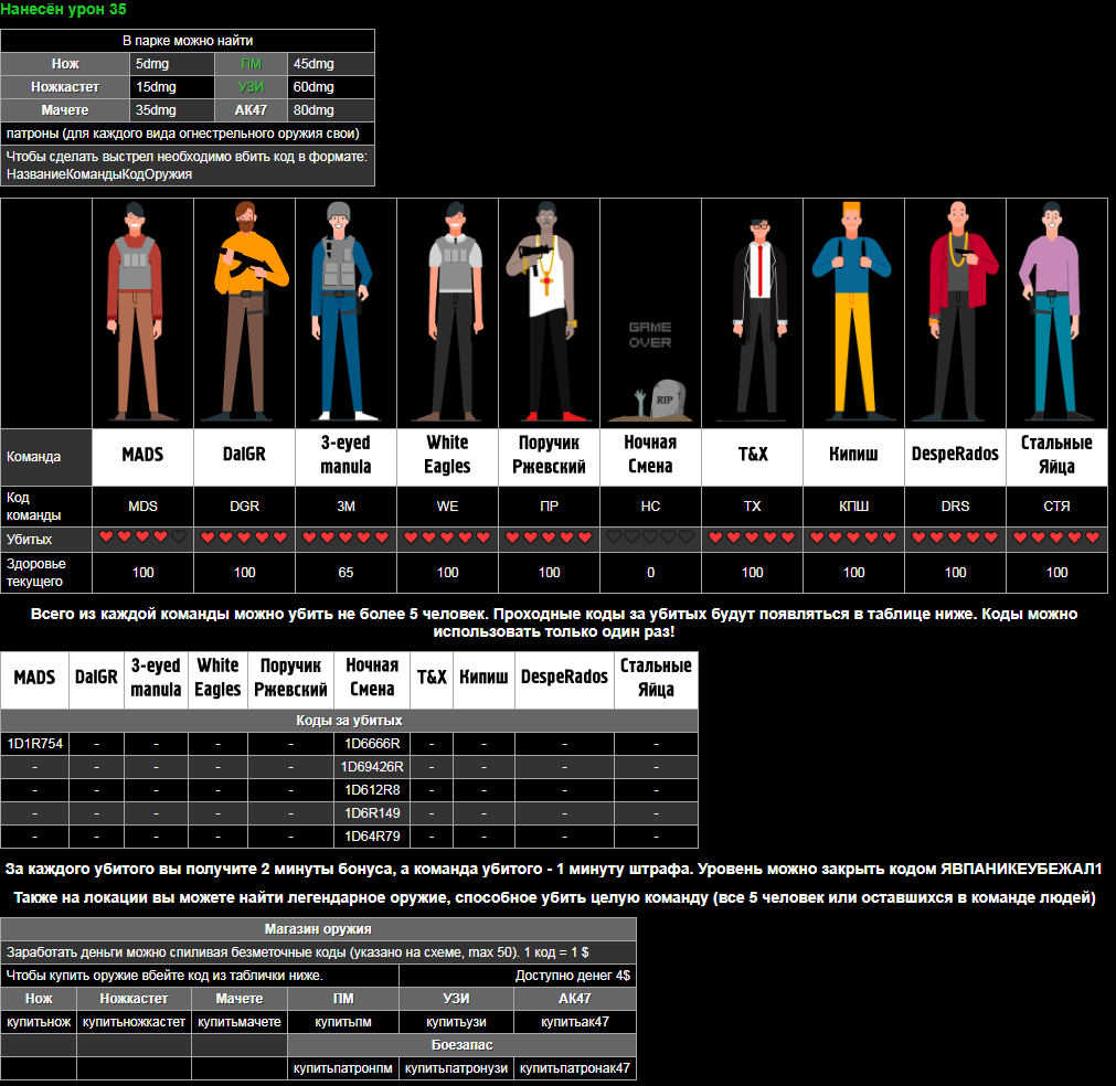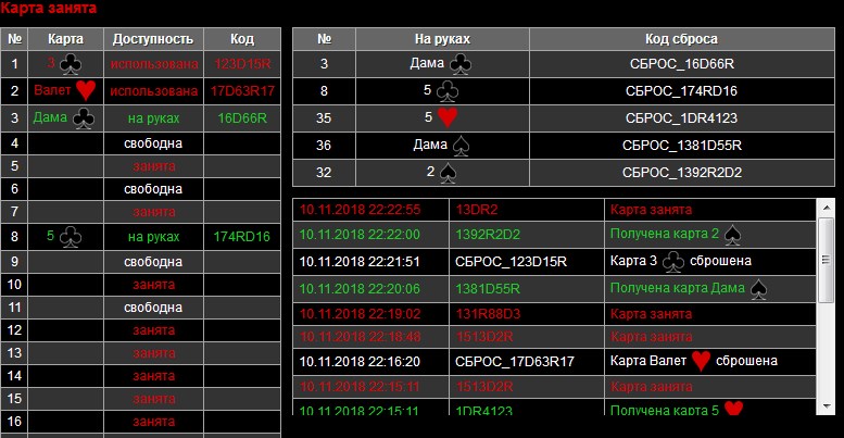 Информация по коду — от 750₽. По вбитию кодов в таблице, соответствующей сектору, появляется часть проходного кода. Коды соответствуют мастям карт. Коды масти принимаются в интервалы времени, заданные для масти.